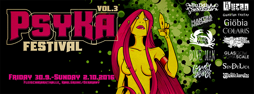 So today, I'm proud to be partnering up for a killer giveaway with a festival I never heard of before (despite being the 3rd edition this year), and what a shame it is for me ! Because, yeah, the PsyKA Festival, happening in Karlsruhe, Germany, has a lineup that will surely make a lot of fuzzers drool over it ! More leaning towards the Psych side of the Heavy scene, be prepared to expand your mind during 3 days full of psychedelic/acid rock, spacerock, 60/70-retro-rock, post-rock, stoner and desert rock.